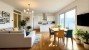 Der helle, offene Koch- und Essbereich ist der zentrale Ort in dieser Wohnung. Der Wohnbereich, die 4 Schlafzimmer und 2 Bäder sind hier ringsum angeordnet. Die Schlafbereiche auf der Ost-, bzw. Westseite umfassen jeweils zwei Schlafräume mit einem zugeordneten Bad.